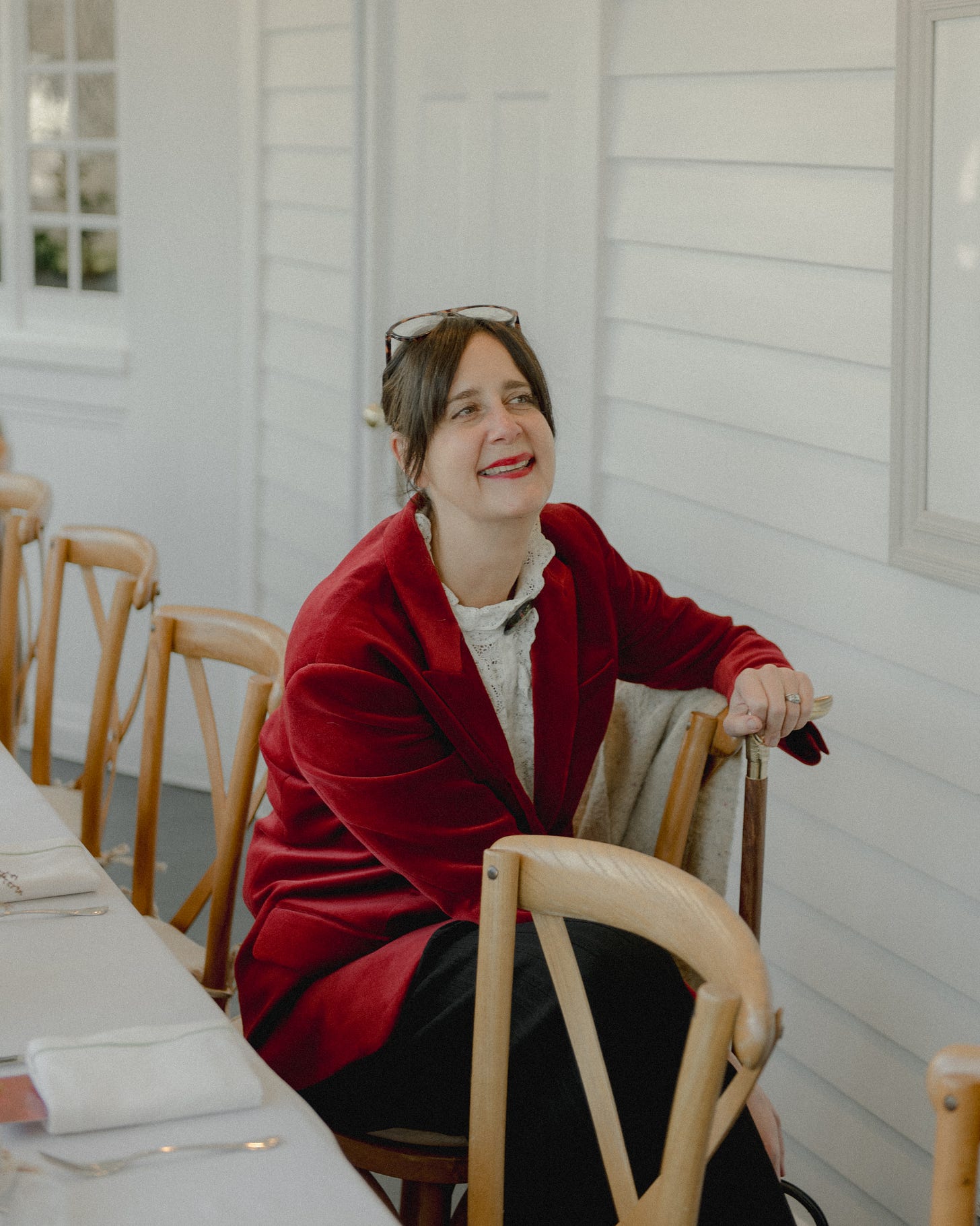 I love this velvet blazer from ba&sh that I wore to the event. It’s perfect for the holidays, but I can see myself wearing it other times of the year. I styled it with this blouse, (which honestly gets more wear than everything else in my closet) and a vintage broach, similar to this one. This could also work, oh and I love this one too. But, if I’m being honest, the real star of the show was my cane. Who would have thought? She’s a real conversation starter…